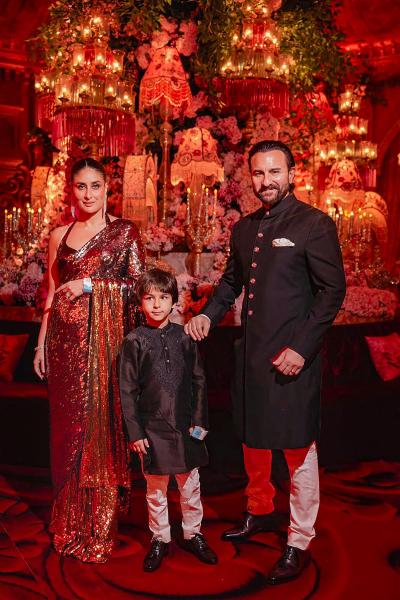 करिनाने सोहळ्याच्या तिसऱ्या दिवशीही डार्क ब्राऊन रंगाची सेक्विन साडी नेसली होती.
