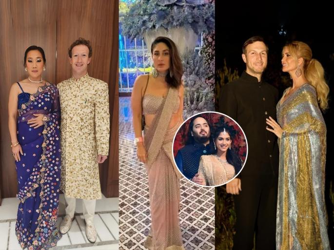 1 / 12मुकेश अंबानी आणि नीता अंबानी यांचे धाकटे चिरंजीव म्हणजे अनंत अंबानी. अनंत आणि राधिक मर्चंट यांच्या जामनगर येथे झालेल्या विवाहसोहळ्यात जगभरातले दिग्गज उपस्थित होते. त्या सोहळ्यात उपस्थित असणाऱ्या प्रत्येकाचेच कपडे पाहण्यासारखे असले तरी परदेशी पाहुण्यांसह भारतीय अभिनेत्रींने नेसलेल्या साड्या लक्षवेधी ठरल्या...2 / 12या विवाह सोहळ्यात आपल्या पती आणि मुलीसह उपस्थित असलेल्या इवांका ट्रम्प हिने गोल्डन आणि सिल्व्हर रंगाची सेक्विन साडी नेसली होती. तिची ही साडी मनिष मल्होत्रा यांनी डिझाईन केली होती.3 / 12मार्क जुकरबर्ग यांची पत्नी प्रिसिला चॅन यांची जांभळ्या रंगाची फ्लोरल प्रिंटची साडी अतिशय देखणी होती.4 / 12करिना कपूरने नेसलेली ही चेरी पिंक रंगाची साडी आणि ती साडी नेसण्याची पद्धत दोन्हीही एकदम हटके होतं.5 / 12करिनाने सोहळ्याच्या तिसऱ्या दिवशीही डार्क ब्राऊन रंगाची सेक्विन साडी नेसली होती.6 / 12महेंद्रसिंग धोनीची पत्नी साक्षी धोनी हिचा काळ्या साडीतला हा लूक स्टनिंग ठरला.7 / 12बिल गेट्स यांची पत्नी पॉला हिने काळ्या रंगाची ही सुंदर साडी नेसली होती.8 / 12पेस्टल ग्रीन रंगाच्या थ्रीडी फुलं असणाऱ्या साडीमध्ये माधुरी दीक्षितचं सौंदर्य असं खुलून आलं होतं.9 / 12शाहरुख खानची लेक सुहाना खान हिनेदेखील पिवळसर छटा असणारी साडी नेसली होती. तिच्या साडीवर भरगच्च मोती, मिरर आणि एम्ब्रॉयडरी केलेलं होतं. या साडीवर ट्यूब ब्लाऊज घातलेल्या सुहानाचा लूक आकर्षक ठरला. 10 / 12बॉलीवूडमध्ये लवकरच पदार्पण करत असलेल्य शनाया कपूरने नारंगी रंगाची पटोला साडी नेसली होती. तिच्या साडीच्या ब्रॉकेड काठांवर तसेच ब्लाऊजवर भरगच्च एम्ब्रॉयडरी केलेली होती. या साडीवर तिने हेवी दागिने आणि ग्लॉसी मेकअप केला होता.11 / 12करिश्मा कपूरचा लूक अतिशय वेगळा ठरला. तिने साडीवर बंदगळा जॅकेट असा एकदम हटके लूक केला होता. 12 / 12गुलाबी सेक्विन साडीत जान्हवी कपूरही अतिशय देखणी दिसत होती.