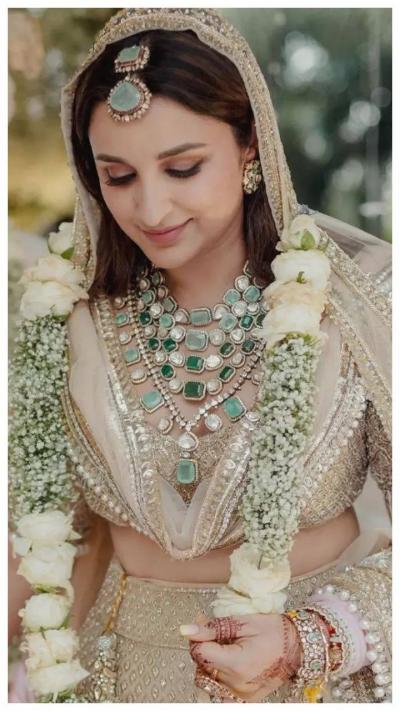 परिणिती चोप्राने घातलेल्या या सेटची खूप चर्चा झाली होती. तिचा हा सेट खरे पाचू वापरून तयार केलेला असला तरी तुम्हाला कमी किमतीत आर्टिफिशियल खडे वापरून हा सेट मिळू शकतो.