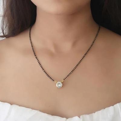 काळ्या, सोनेरी मण्यांसह मध्ये एक डायमंड असलेलं मंगळसुत्रात गळा सुंदर दिसतो.