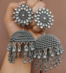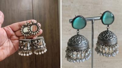 सध्या बाजारात या पद्धतीचे झुमका सेट ट्रेंडिंगला आहेत. कानातल्यांच्या वरच्या बाजूला काच आणि खाली ऑक्सिडाईजचे मोठ्या आकाराचे झुमके, हे कॉम्बिनेशन अगदी सुंदर दिसते. आपणही हे झुमके ट्राय करू शकता.