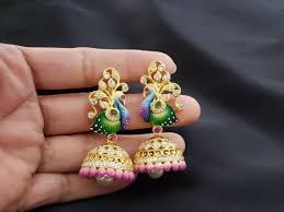 काहींना मोराची डिझाईन असलेले कानातले खूप आवडतात. या पद्धतीचे कानातले घातल्यानंतर वेगळाच लूक येतो. शिवाय हे झुमके फार आकर्षक दिसतात.