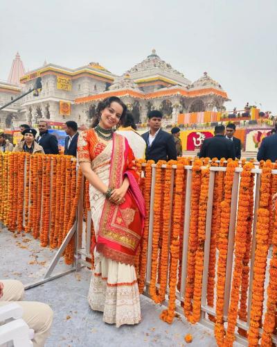 कंगना रानौतने (Kangana Ranaut) पहाटे अयोध्येतील हनुमान मंदिरात झालेल्या स्वच्छता मोहिमेत सहभाग नोंदविला. तिने हातात झाडू घेऊन मंदिराची साफसफाई केली. त्यानंतर सुंदर पांढऱ्या रंगाची साडी नेसून ती प्राणप्रतिष्ठा सोहळ्यात हजर झाली.