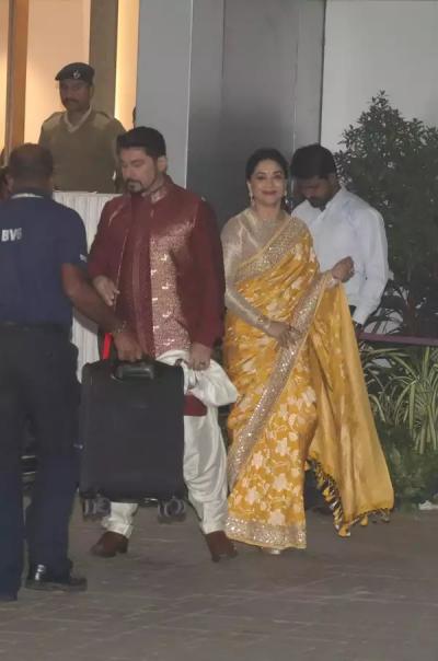 माधुरी दिक्षितने (Madhuri Dixit) अयोध्येत येण्यासाठी पिवळ्या रंगाच्या सुंदर साडीची निवड केली आहे. तर डॉ. श्रीराम नेने यांनीही धोती- कुर्ता घालून अयोध्येत हजेरी लावली.