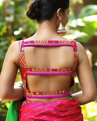 जर तुम्हाला जास्त उघडा गळा आवडत नसेल तर इल्यूजन बॅक ट्राय करू शकता. यात पाठीचा अर्धा भाग साडीच्या कापडाचा आणि वरचा भाग स्किन रंगाच्या नेटचा असतो. या नेटवर साडीच्या काठांचे छोटे पिसेस लावले जातात.