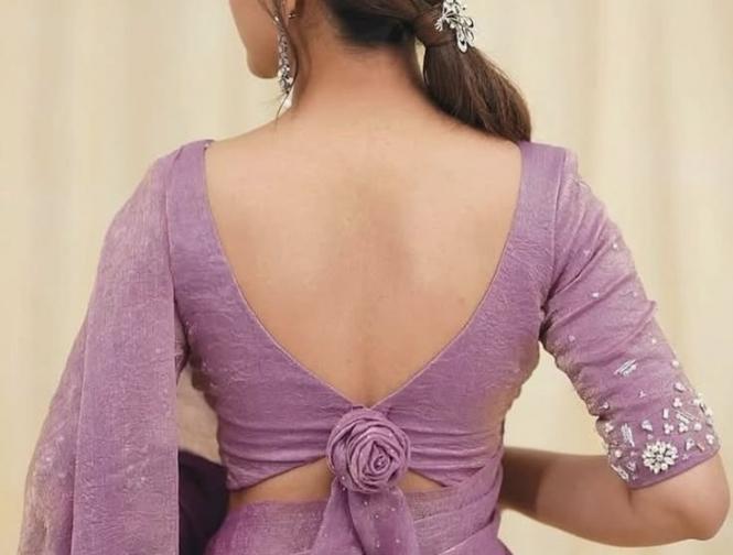 सध्या ब्लाऊजच्या पाठीवर हातानं केलेली हॅण्ड एम्ब्रॉयडरी किंवा साडीच्या नावाचे पहिले अक्षर विणून घेण्याचा ट्रेंड आहे.