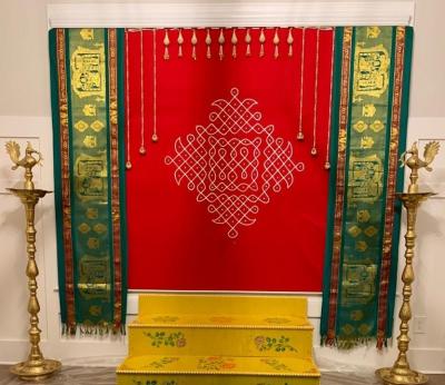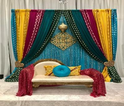 वेगवेगळ्या रंगांच्या ओढण्या वापरून असा सुंदर बॅकड्रॉप तयार करता येतो.