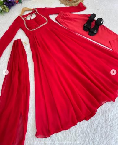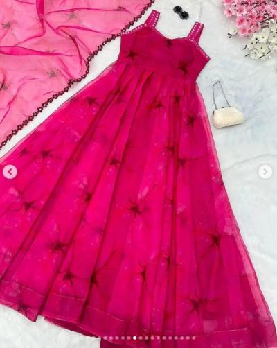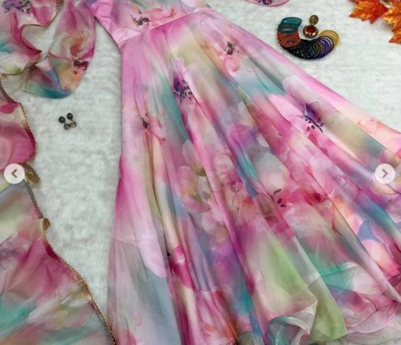 तुमच्याकडे असलेली एखादी साधी पण सिल्क किंवा जॉर्जेटची साडी वापरून एक भव्य फ्लोअर लेन्थ अनारकली ड्रेस तयार करू शकता. (Beautiful Anarkali dress From Simple Saree)