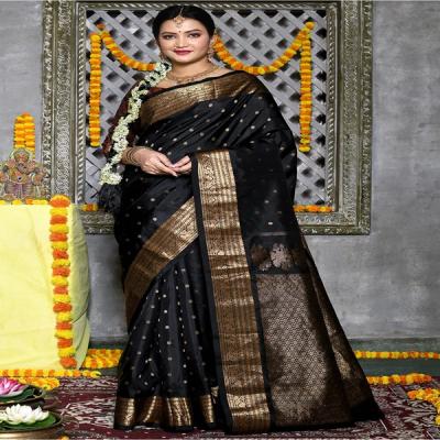 प्युअर सिल्क प्रकारातली काळी साडी घ्यायची असेल तर प्युअर सिल्क गढवाल हा एक चांगला पर्याय असू शकतो.