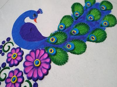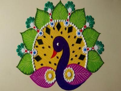मोर फक्त पैठणीच्या पदरावर नसून, रांगोळीच्या डिझाईनमध्येही शोभून दिसते. जर आपल्याला आकर्षक रांगोळी काढायची असेल तर, त्यात सुंदर रंगही भरा.