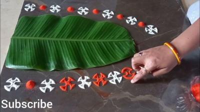 ही रांगोळी काढायला अतिशय सोपी आहे, शिवाय फरशा जर पांढऱ्या रंगाच्या असतील तर त्यावर ती खूप जास्त उठूनही दिसते.