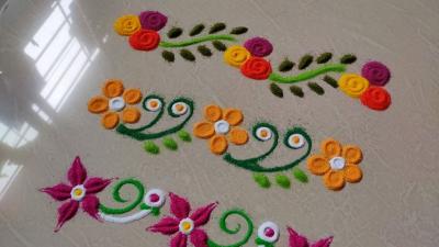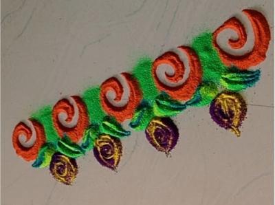 जागा थोडी मोठी असेल तर तुम्ही अशी थोडी ऐसपैस सुंदर रांगोळी काढू शकता..