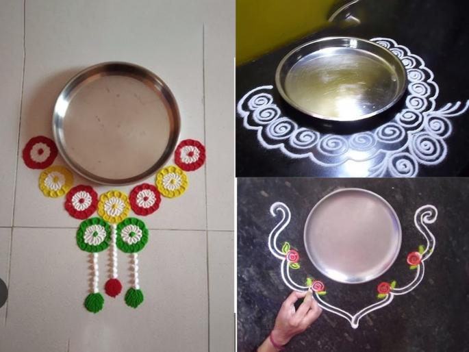 1 / 6लग्नसराई सध्या जोरात असल्याने केळवणाचे कार्यक्रम होत असतात. त्या कार्यक्रमांमध्ये वधु- वरांच्या किंवा मौंज असेल तर बटूच्या ताटाभोवती तुम्ही अशा काही सुंदर रांगोळ्या काढू शकता.(beautiful rangoli designs around food plate)2 / 6या रांगोळ्या केवळ लग्न, मौंजच नाही तर इतर कार्यक्रमासाठीही खूप उपयुक्त ठरणाऱ्या आहेत (border rangoli designs around plate). कारण कोणत्या ना कोणत्या कार्यक्रमानिमित्त, सणानिमित्त घरी जेवायला पाहुणे येत असतात. अशावेळी त्यांच्या पानाभोवती आपण अशा काही रांगोळ्या काढून ताट आणखी सुशोभित करू शकतो.(jevnachya panasamor kadhnyasathi rangoli designs)3 / 6अशी रांगोळी ताटाच्या भोवती असेल तर जेवणारा नक्कीच सुखावून जातो आणि दोन घास जास्त खातो.4 / 6जागा थोडी मोठी असेल तर तुम्ही अशी थोडी ऐसपैस सुंदर रांगोळी काढू शकता..5 / 6ही रांगोळी काढायला अतिशय सोपी आहे, शिवाय फरशा जर पांढऱ्या रंगाच्या असतील तर त्यावर ती खूप जास्त उठूनही दिसते.6 / 6अशा काही रांगोळ्या तुम्ही जेवणाच्या ताटाभोवती तर काढूच शकता, पण पाटाभोवती, देवघरासमोर किंवा मग घराच्या मुख्य दरवाजाला बॉर्डर म्हणूनही काढू शकता.