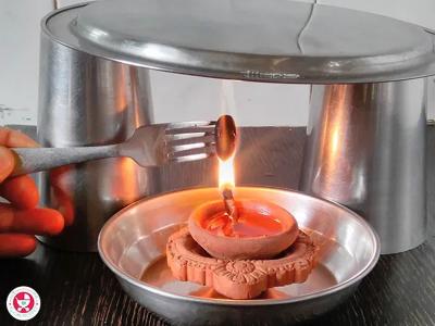 प्लेटवर साचलेले काजळ चमच्याने घासून काढा. लहान ताटात गोळा करा. त्यात शुद्ध तूप किंवा खोबऱ्याचे तेल मिसळा आणि त्याची पेस्ट तयार करा.
