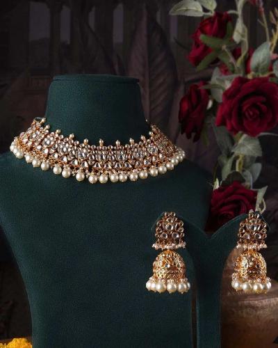 हळदीच्या या खास सोहळ्यात आपले सौंदर्य वाढवायचे असेल तर पांढऱ्या रंगाचा सोन्याचा मुलामा असलेला नेकलेस सेट घालू शकता.