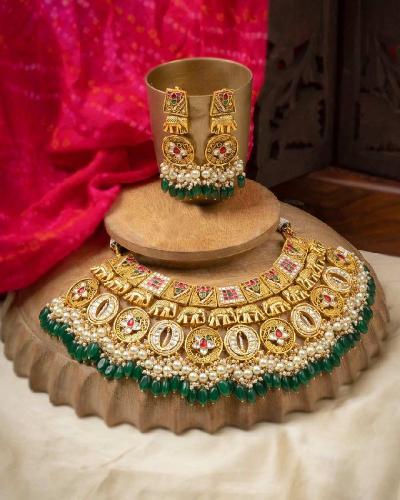 हळदी समारंभात स्टायलिश लूक हवा असेल तर मल्टी कलर गोल्ड प्लेटेड नेकलेस सेट ट्राय करा.