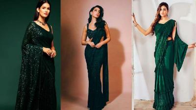 एमराल्ड ग्रीन म्हणजे गडद पाचूचा रंग. हा रंग केवळ डोळ्यांना सुखद वाटत नाही, तर तो प्लस साईज महिलांना स्लिमिंग इफेक्ट येण्यासाठी अत्यंत उपयुक्त आहे. एमराल्ड ग्रीन हा एक 'ज्वेल टोन' आहे. गडद शेड असल्यामुळे हा रंग शरीराचा आकार अधिक सुटसुटीत दाखवतो. विशेषतः रात्रीच्या दिव्यांच्या प्रकाशात हा रंग अत्यंत तेजस्वी आणि ग्लॅमरस दिसतो. एमराल्ड ग्रीनमध्ये सॅटीन-जॉर्जेट किंवा सिल्क-शिफॉन साड्या निवडा. या साड्या शरीराला चिकटून राहतात आणि अनावश्यक फुगीरपणा दिसत नाही. जर तुम्हाला डिझायनर लूक हवा असेल, तर एमराल्ड ग्रीन साडीवर त्याच रंगाचे बारीक टिकली काम (Self-color sequins) असलेले ब्लाऊज मॅच करा, यामुळे एक सलग लूक मिळतो आणि शरीर सुडौल दिसते.