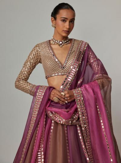 स्टाईलिश कॉलर V-नेक आपल्या पार्टी लूकला इंडो-वेस्टर्न लूक देईल. लेहेंग्यासोबत हा लूक सुपर-ग्लॅमरस दिसतो.