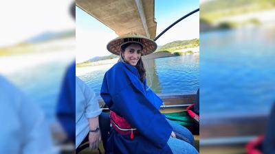 ५. किमोनो हा ट्रॅडीशनल जपानी ड्रेस घालून नव्याने बोटींग करण्याचा आनंदही घेतला. निळ्या रंगाचा किमोनो आणि हॅट अशा पेहरावात ती छानच दिसत होती.