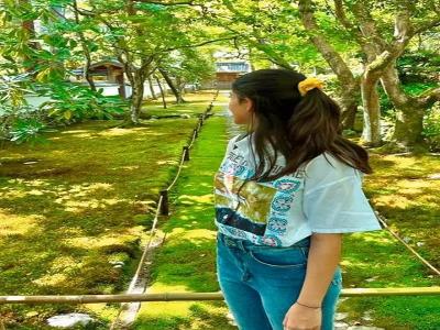 ३. जपानच्या क्योटो शहरात तिने बऱ्यापैकी वेळ घालवला. तिथली हिरवळ तिला विशेष आवडल्याचं दिसून येतं. अर्थातच कोणत्याही निसर्गप्रेमीला आवडेल असंच तिथलं वातावरण दिसत आहे.