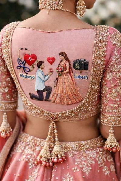 तुमच्या जोडीदाराचा किंवा तुमच्या दोघांचा एखादा सर्वात जास्त आवडलेला कपल फोटो देखील तुम्ही तुमच्या ब्लाऊजच्या बॅकवर फोटो एम्ब्रॉयडरी करुन घेऊ शकता.
