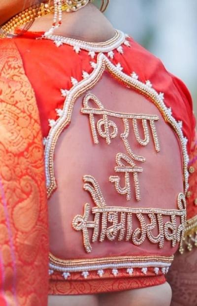 आजकाल मुली नवऱ्याचे नाव मेहेंदीमध्ये लिहिण्यासोबतच ते ब्लाऊजच्या डिझाइन्समध्ये देखील वेगवेगळ्या पद्धतीने लिहून एकदम भन्नाट लूक करतात. विशालची कारभारीण, शुभमची बायको, शैलेशची नवरी, राजेश की दुल्हनिया असं वेगवेगळ्या प्रकारे लिहून कस्टमाइज केल्यास ब्लाऊज आणखीनच सुंदर दिसतो.