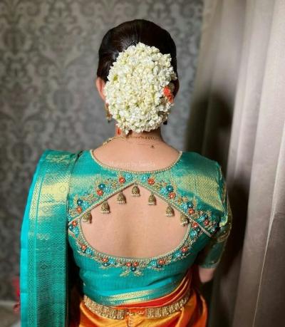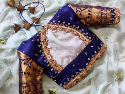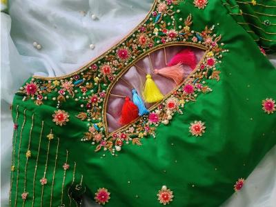 ब्लाऊजच्या हातांवर किंवा बॅकवर तुम्ही पतीचे नाव, कोणताही छोटा मेसेज आरी वर्क करून बनवून घेऊ शकता.