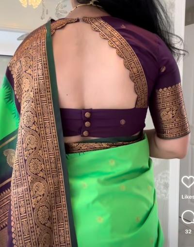 कोणत्याही साडीवर कॉन्ट्रास्ट कापड घेऊन तुम्ही या टाईपचं ब्लाऊज शिवून घेऊ शकता.