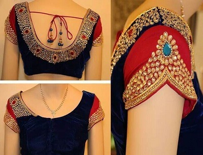 बाह्यांवर मोराचे किंवा वेलींचे चित्र काढून त्यात पांढरे किंवा रंगीत खडे भरल्यानं ब्लाऊज अत्यंत रॉयल दिसतो.