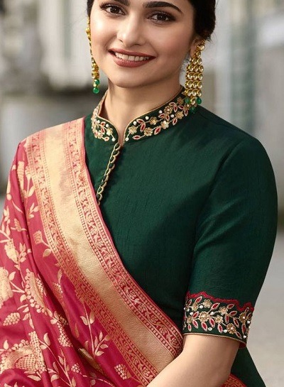 जर तुम्ही स्लिव्हजलेस घालणं पसंत करत असाल तर अशा नेक पॅटर्नचे ब्लाऊज शिवा. क्लोज नेकसुद्धा तुम्हाला फॅशनेबल लूक देईल.