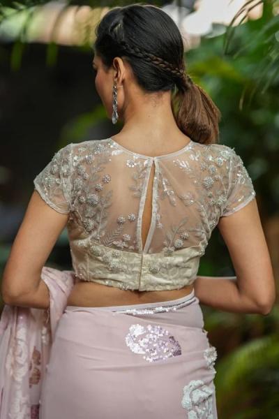 तुमची साडी नेटची नसेल तरीही तुम्ही ब्लाऊजच्या मागच्या बाजूला नेट लावून साडीचा आणि ब्लाऊजचाही लूक अधिक आकर्षक करू शकता.