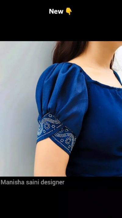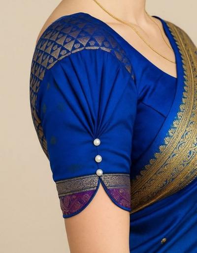 बाह्यांवर कापडाच्या बारीक चुण्या पाडून शिवलेला हा पॅटर्न मॉडर्न साड्यांसाठी उत्तम आहे.