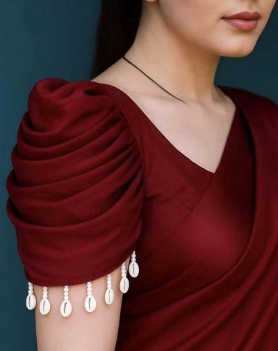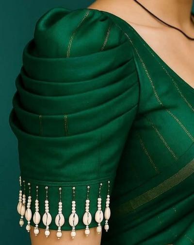 सिल्क किंवा पैठणी साड्यांवर कोपरापर्यंतच्या पफ बाह्या अत्यंत रॉयल दिसतात. याशिवाय खालच्या बाजूनं लटकन लावणं खूपच ट्रेंडीग दिसते.