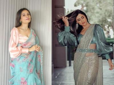 शिअर स्लिव्हज म्हणजे थोड्या पारदर्शक कापडाच्या (जसे नेट, ऑर्गेन्झा किंवा ट्युल) बनवलेल्या बाही. या बाह्यांमुळे हात झाकला जातो पण तरीही हलका, सॉफ्ट आणि स्टायलिश लूक मिळतो. ज्यांचे दंड थोडे जाड आहेत, त्यांच्यासाठी शिअर स्लीव्ह ब्लाऊज उत्तम पर्याय ठरतो कारण तो हात झाकतो त्यामुळे दंड जाडजूड वाटत नाही. शिवाय, या बाहींमध्ये हलकासा ट्रान्सपरन्सी इफेक्ट असल्याने हात स्लीम दिसतात. हा पॅटर्न फेस्टिव्ह, पार्टी किंवा रिसेप्शन साड्यांसोबत अत्यंत ग्रेसफुल दिसतो.