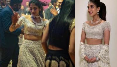 ७. अंबानी परिवाराची धाकटी सून राधिका मर्चंट ही देखील दोन वेळा एकाच ड्रेसमध्ये दिसून आली.