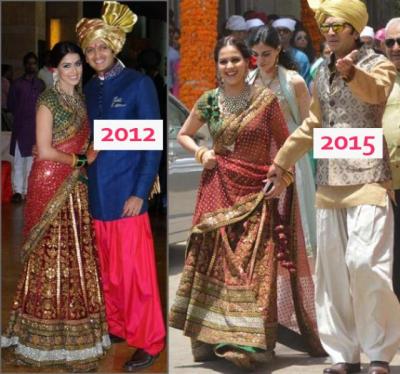 ३. जेनेलियाने जो घागरा तिच्या दिराच्या म्हणजेच रितेश देशमुखच्या भावाच्या लग्नात घातला होता, तोच घागरा तिने ३ वर्षांनंतर तिच्या भावाच्या लग्नात घातला.