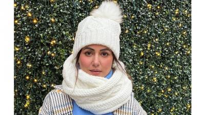 २. कतरिना सारखंच काहीसं आहे हिना खानचं (Hina Khan).. तिचा स्कार्फ देखील लोकरीचाच आहे.. तुमच्याकडे असाच एखादा लोकरीचा स्कार्फ असेल तर फक्त त्यावर मॅचिंग होणारी एक लोकरीची टोपी घेऊन टाका.. टोपी आणि स्कार्फचं कूल कॉम्बिनेशन तुम्हाला एकदम हटके लूक देईल...