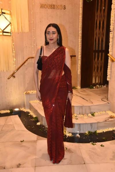करिश्मा दिवाळी लूकमध्ये मरून साडीत झळकली होती.