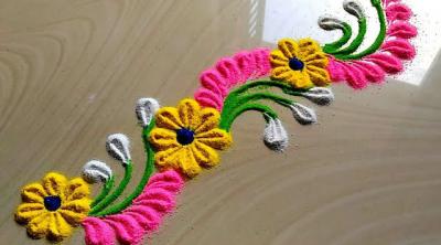 ८. फुलं आणि रांगोळी यांचं छान कॉम्बिनेशन असलेली ही एक आकर्षक रांगोळी.