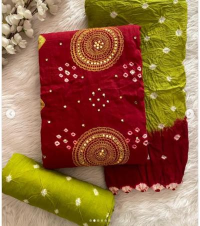 बांधणीच्या ड्रेस पीसेसमध्ये प्रामुख्यानं कॉटन, सिल्क, सॅटीन आणि जॉर्जेट या कापडांचा वापर केला जातो. हातानं बांधून केलेली ही पारंपारीक कला असल्यामुळे कापड मऊ आणि टिकाऊ असते.(Classy patterns of Bandhani Dresses)