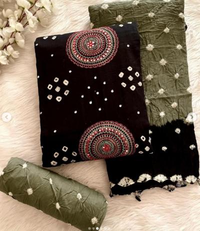 बांधणीच्या सेटमध्ये ओढणी हा सर्वात महत्वाचा भाग आहे यावर सुंदर लाडू बांधणी किंवा काठाला गोटा पट्टीचे काम असते जे ड्रेसला अधिक सुंदर बनवते.