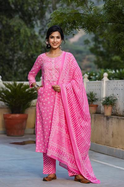 कुर्त्यावर बारीक बांधणीचे दाणे किंवा डिझाईन्स असतात. सध्या अनारकली किंवा सरळ कट असलेल्या कुर्त्यांची फॅशन जास्त आहे. (10 Colors Combinations Of Bandhani Dresses)