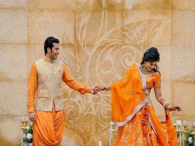 पिवळा आणि नारंगी रंगाचे कॉम्बिनेशन अगदी सुंदर दिसते. हे दोन्ही रंग अगदी एकमेकांसोबत खास दिसतातच, यासाठी तुम्ही हळदीसाठी रस्टी ऑरेंज रंगाच्या कपड्यांची देखील निवड करू शकता.