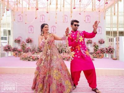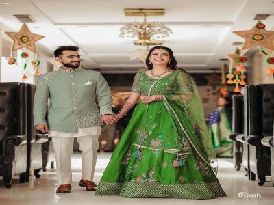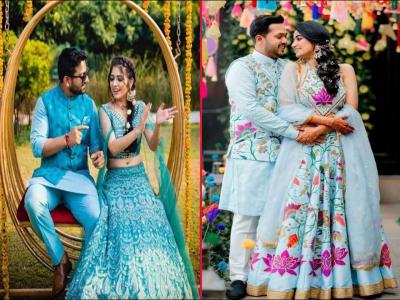 पिस्ता ग्रीन हा रंगचं मुळात खूप सुंदर आहे. हळदी समारंभासाठी तुम्ही अशा प्रकारच्या रंगाचे कपल कॉम्बिनेशन देखील करु शकता.
