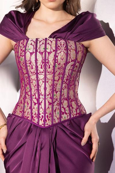पेप्लम स्टाईल कॉर्सेट ब्लाऊजमध्ये थोडा फ्लेअर किंवा घोळ असतो. आपल्याला लोअर बेली फॅटची समस्या असेल, तर पेप्लमचा घोळ तो भाग पूर्णपणे झाकून टाकतो. हा ब्लाऊज सिल्क किंवा ऑर्गन्झा साडीवर अत्यंत रॉयल दिसतो.