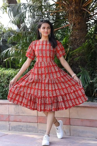 कॉटनचे नी लेंथ फ्रॉक्स तुम्हाला ३०० रूपयांपासून १००० रूपयांपर्यंत वेगवेगळ्या पॅटर्न्समध्ये उपलब्ध होतील. तुम्ही वेगवेगळ्या प्रकारे हे फ्रॉक्स स्टाईल करू शकता.