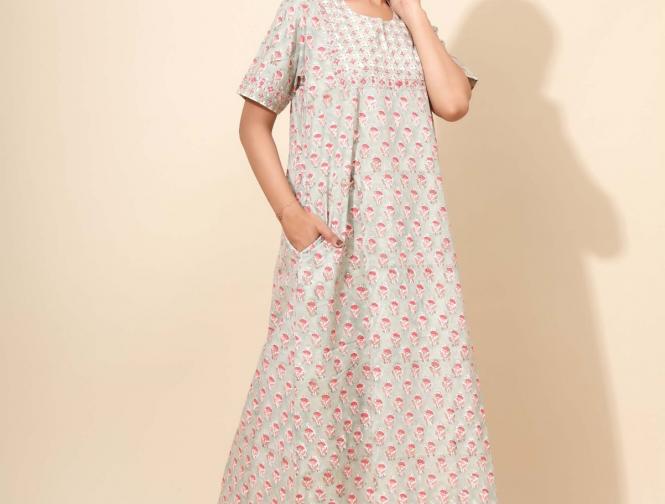 Cotton Maxi Dresses For Home Use : कॉटनचे कपडे धुण्यास आणि त्यांची काळजी घेणं सोपं असतं. ते मशीनमध्ये सहज धुतले जातात.