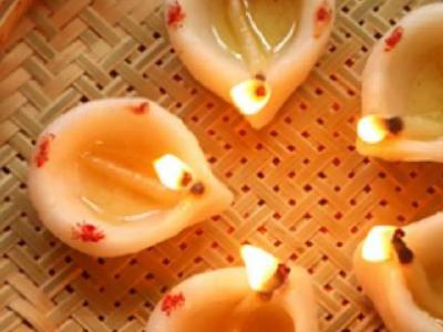 तांदळाच्या उकडीचे दिवे केले जातात. मोदकांसाठी जशी उकड केली जाते अगदी तशीच उकड काढायची. ती छान मळायची. जरा घट्टच ठेवायची. जास्त सैलसर करायची नाही. त्यात नारळ गूळ घातला जातो. हे दिवे वाफवून तयार केले जातात.