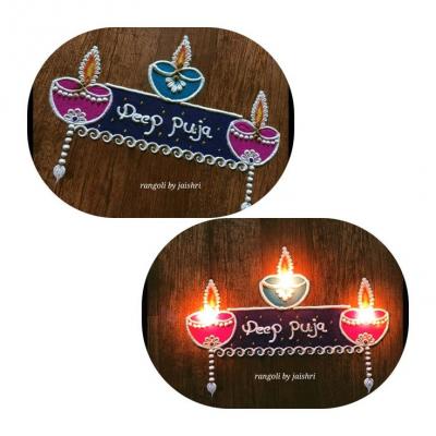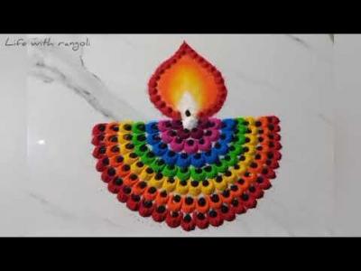 ही रांगोळी दिसायला अतिशय आकर्षक दिसते आणि विशेष म्हणजे ती खूप लवकर काढून होते. मधोमध दिवा ठेवला तर ती अधिक छान दिसू शकते.