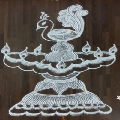 अशा पद्धतीची समई काढली तर तुमची रांगोळी नक्कीच इतरांपेक्षा वेगळी दिसेल. बारकाईने पाहिलं तर ही रांगोळीही अगदी सहज काढता येण्यासारखी आहे.